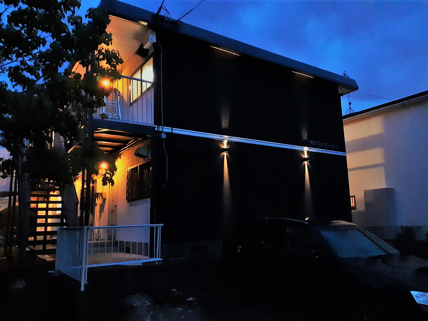 - 駐車場側壁面ライン照明設置