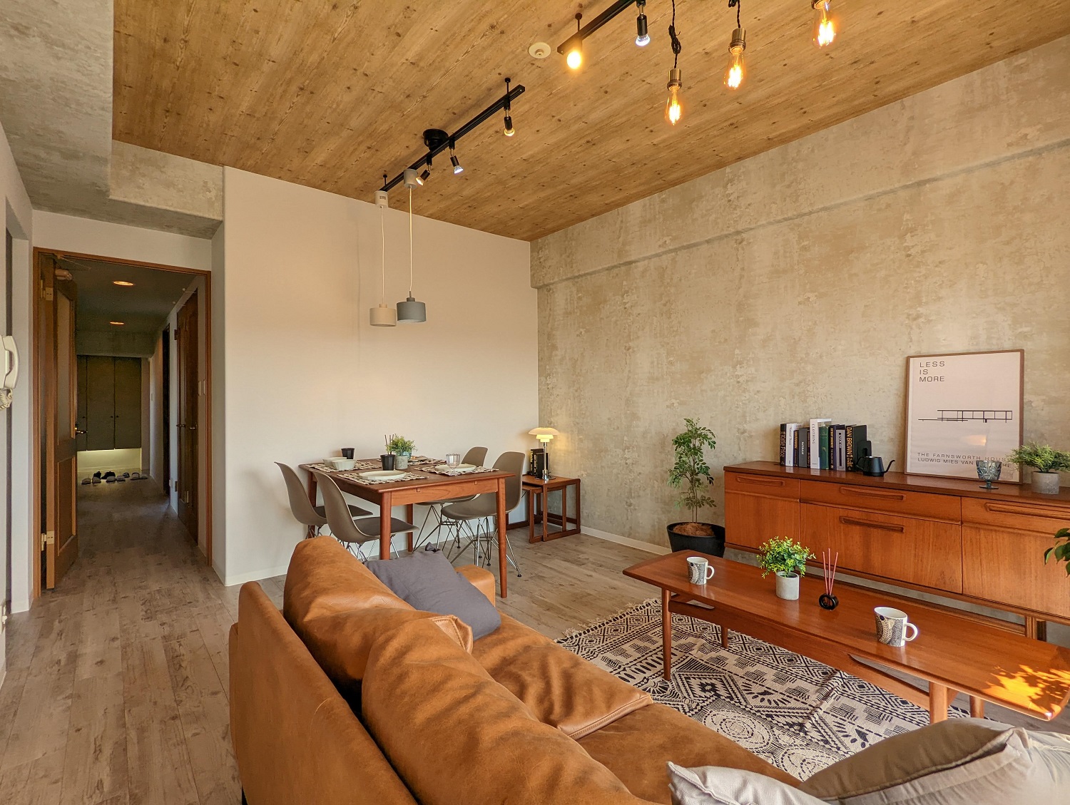 「クールアーバンレジデンス」というリノベーションコンセプトのもとに、壁や梁の一部をコンクリート風で都会的な印象に。