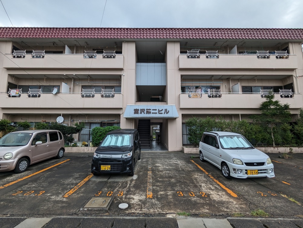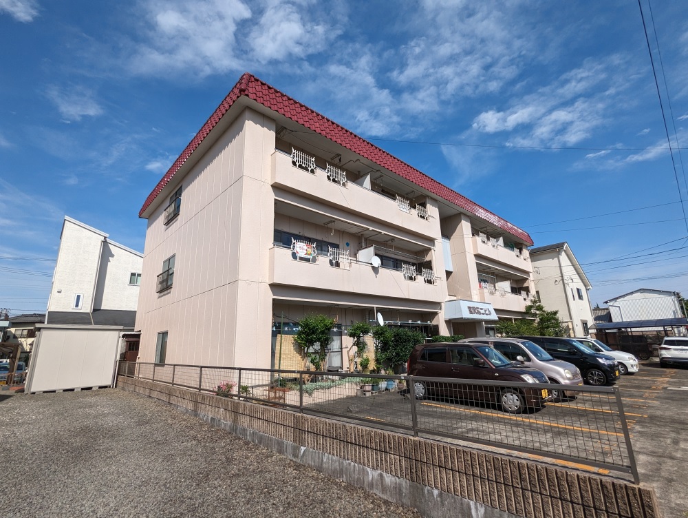 藤枝市岡出山3丁目、藤枝市役所や蓮華寺池公園も近く生活便がよい立地ではあるものの、12室中5室が空室。なんといっても築41年と超築古の物件。